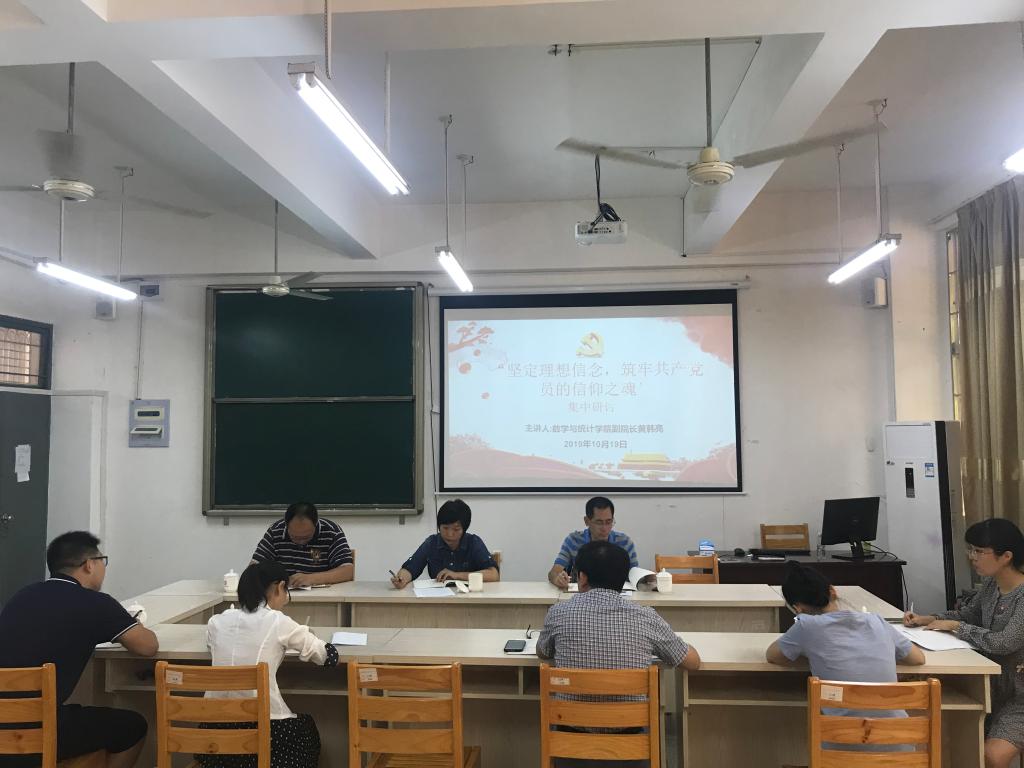10月19日上午,我院在砺志楼106会议室开展“坚定理想信念,筑牢共产党员的信仰之魂”集中研讨会。学院全体党委委员、纪检委员、各支部书记参加研讨会。学院副院长黄韩亮作重点发言,会议由党委书记陈晶莹主持。